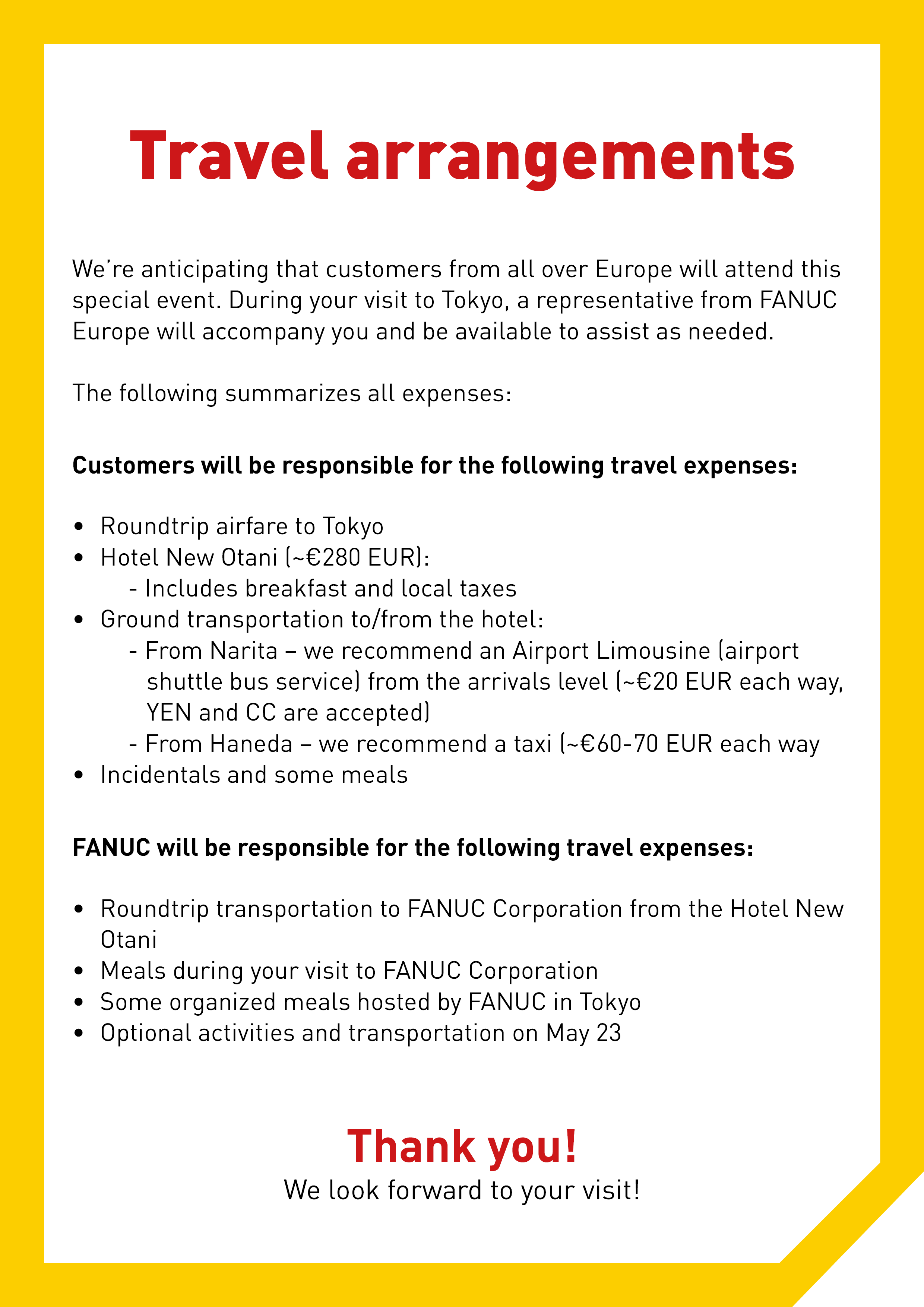 • Evening - Joint Welcome Dinner with FANUC America and Traditional Japanese Live Performance